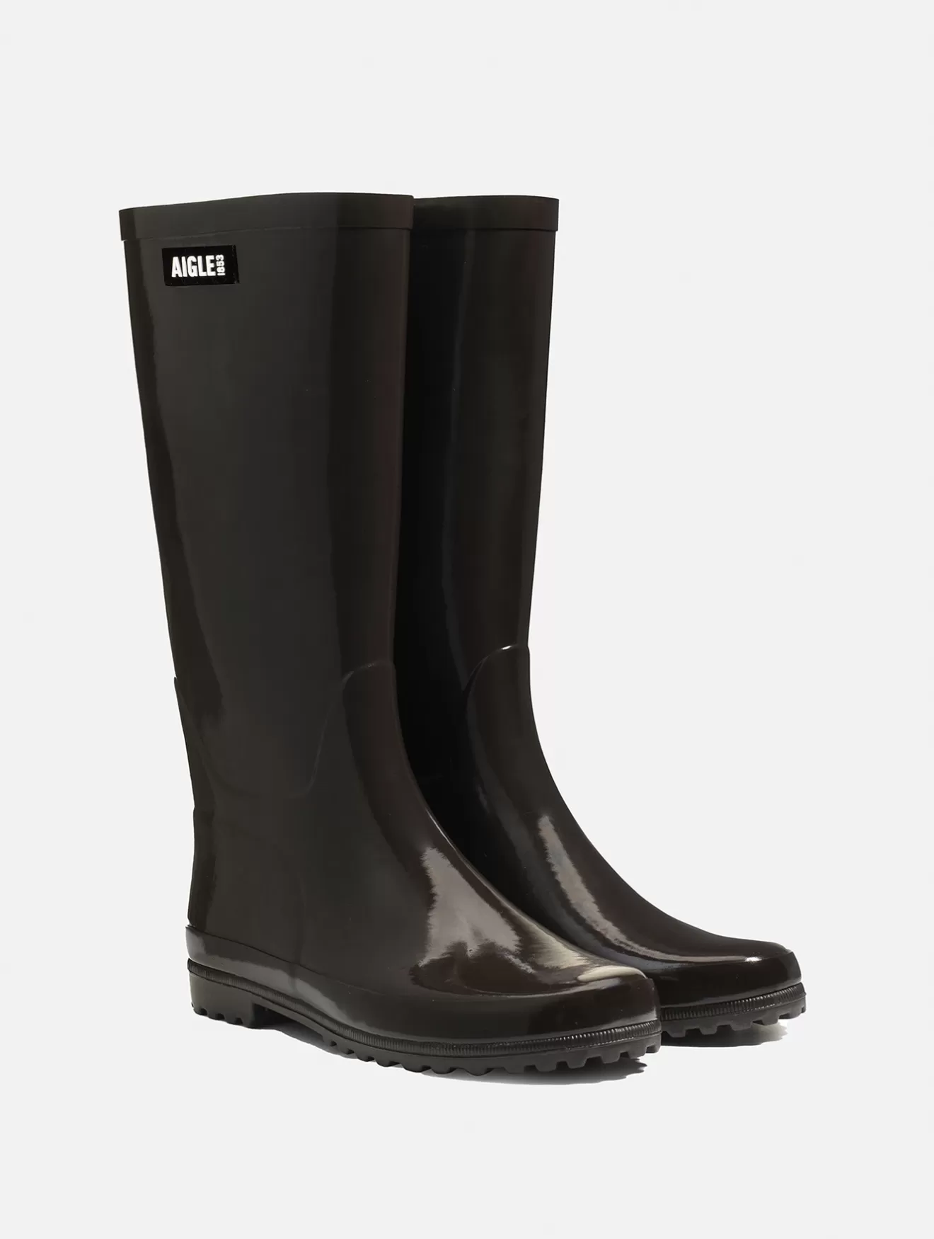 Outlet Aigle Botte De Pluie Boyfriend Fourree, Fabriquee En France. Noir