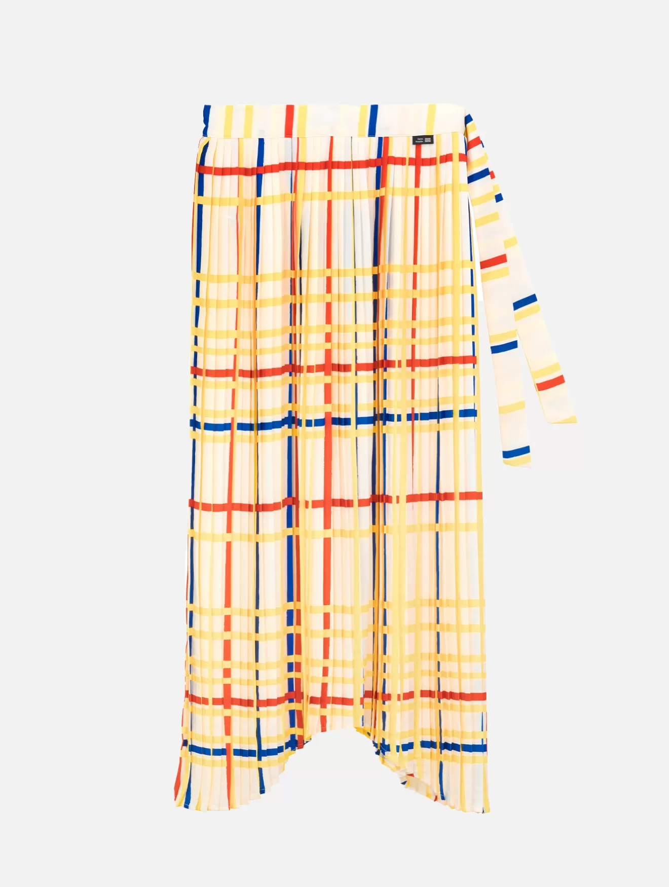La Jupe Portefeuille Plissee Au Tombe Asymetrique En Polyester Recycle S’Anime Sur Les Lignes Aux Couleurs Primaires De L’Oeuvre New York City (1942). -Jupe Portefeuille