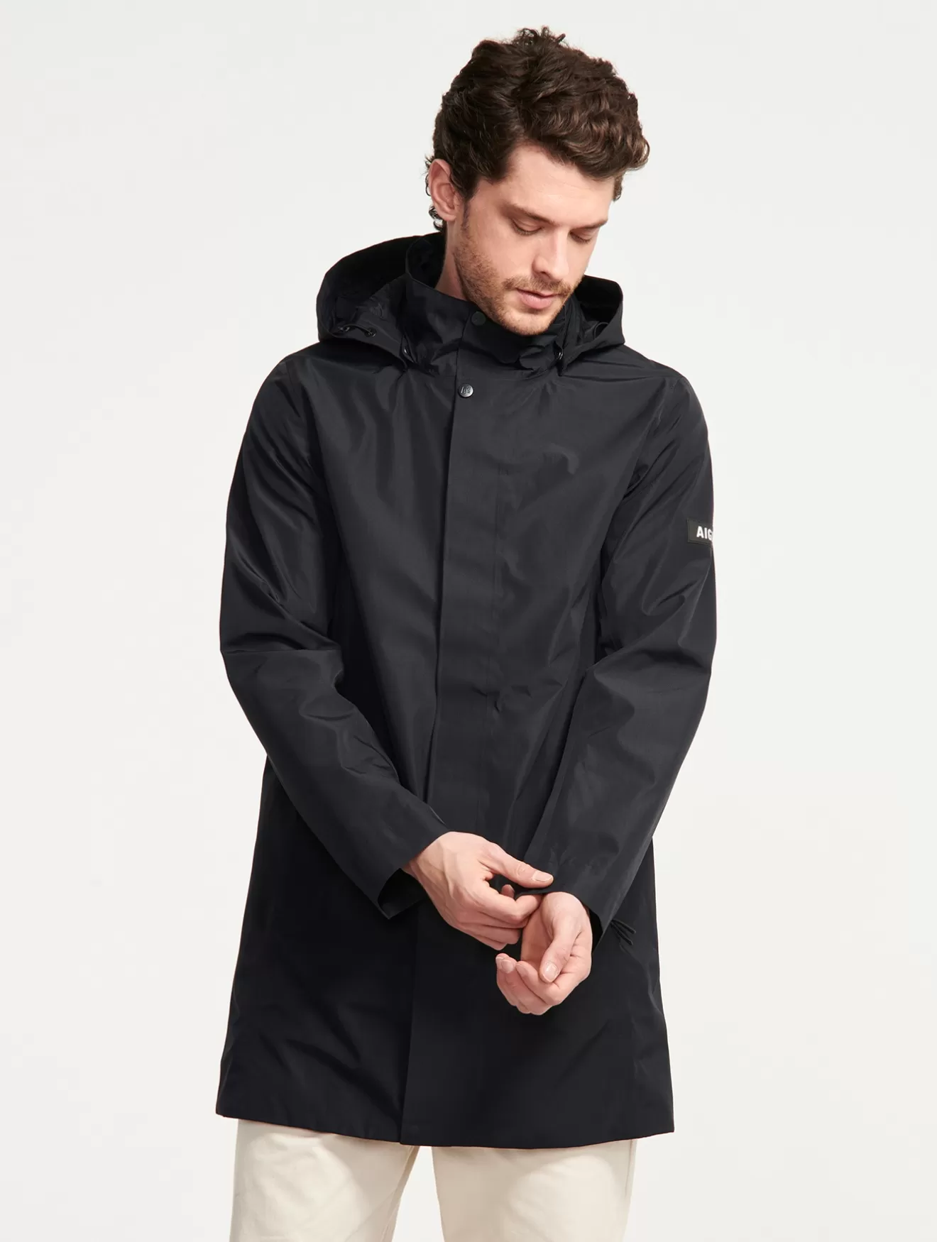 Best Aigle Veste Mi-Longue Enduite A Capuche Noir