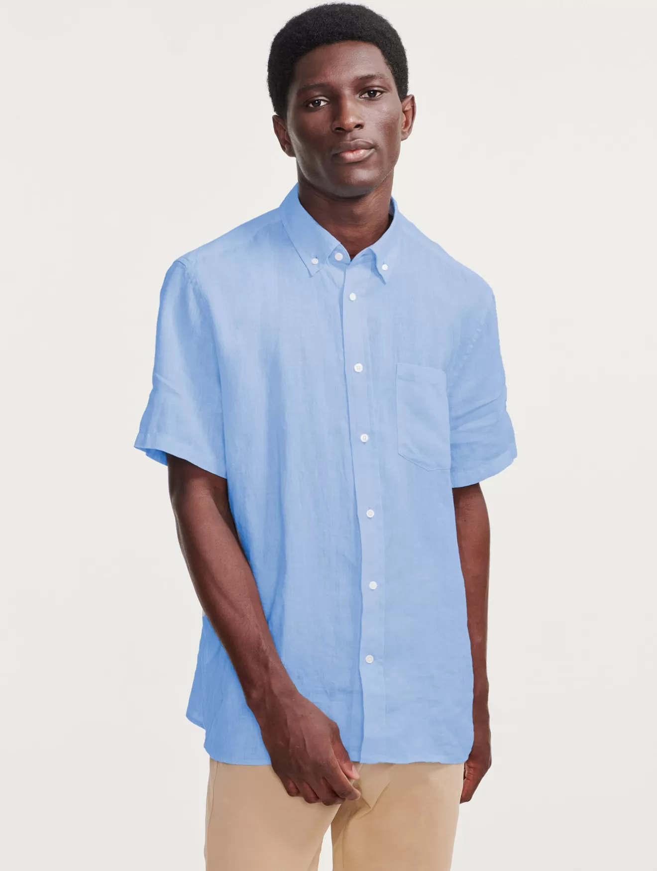 Best Aigle Chemise En Lin A Manches Courtes Bleu Ciel
