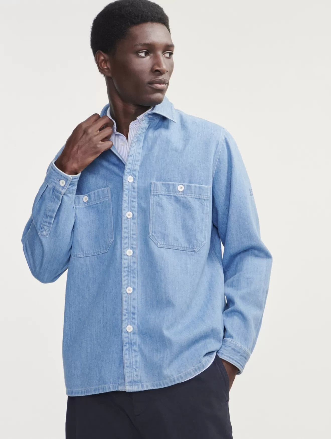 Fashion Aigle Surchemise En Jean A Manches Longues Denim Light Bleach