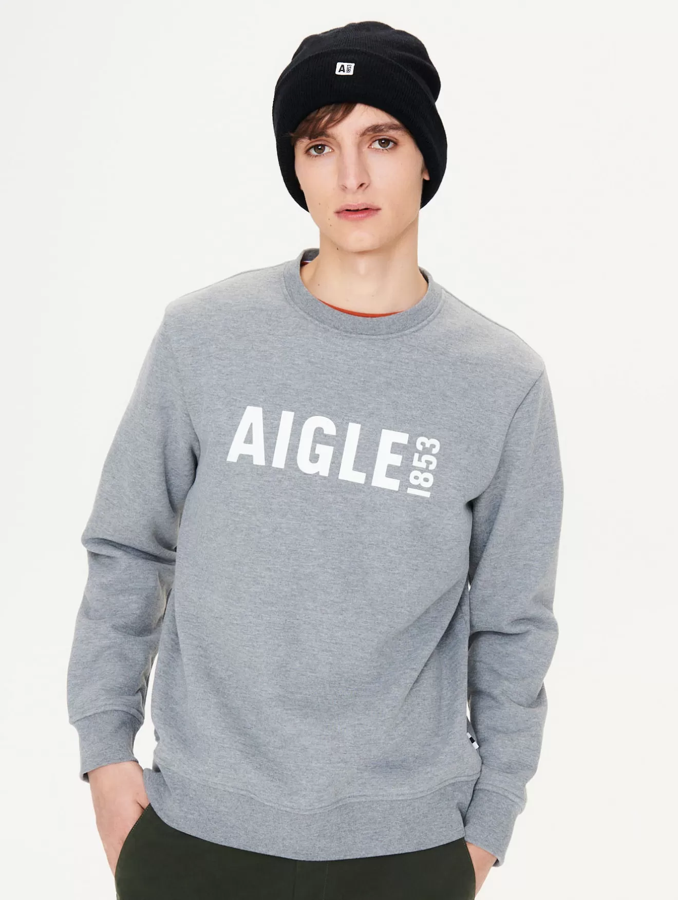 Cheap Aigle Sweatshirt Brosse Col Rond Imprime « » Heather Grey